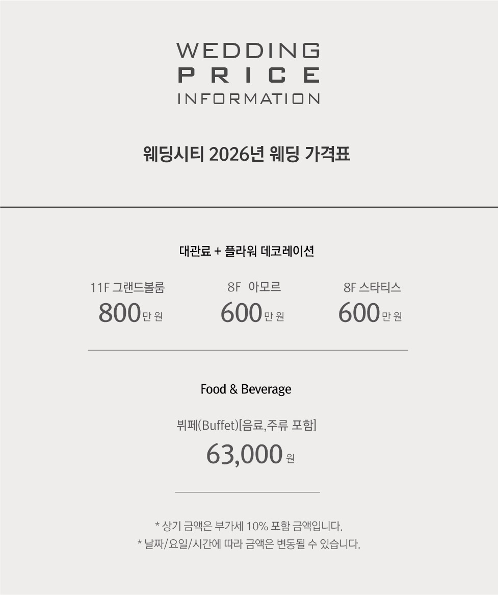 웨딩시티 웨딩 가격정보를 확인하세요.