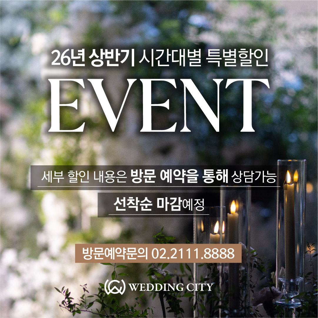 선착순 마감 예정이오니 세부 할인내용은 웨딩시티 예약실 02.2111.8888로 전화주셔서